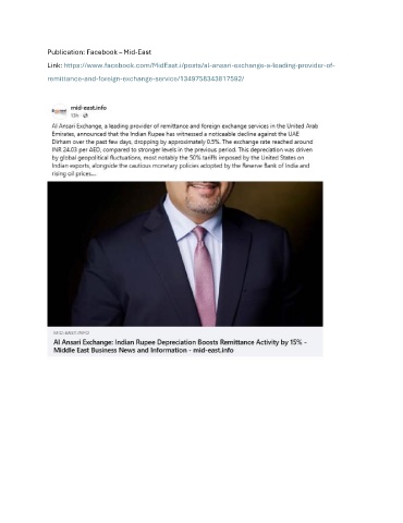 Publication: Facebook – Mid-East Link: https://www.facebook.com/MidEast.i/posts/al-ansari-exchange-a-leading-provider-of- remittance-and-foreign-exchange-service/1349758343817592/