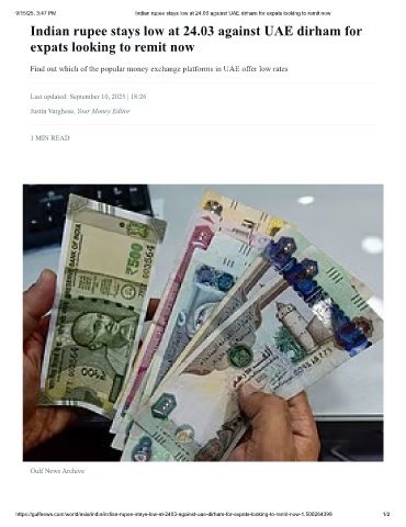 9/15/25, 3:47 PM Indian rupee stays low at 24.03 against UAE dirham for expats looking to remit now