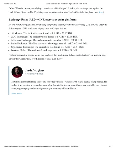 Joyalukkas Exchange: The indicative rate found is 1 AED = 23.91 INR.