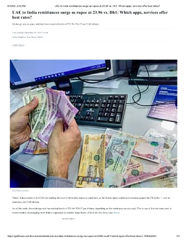 9/10/25, 2:59 PM UAE to India remittances surge as rupee at 23.96 vs. Dh1: Which apps, services offer best rates?