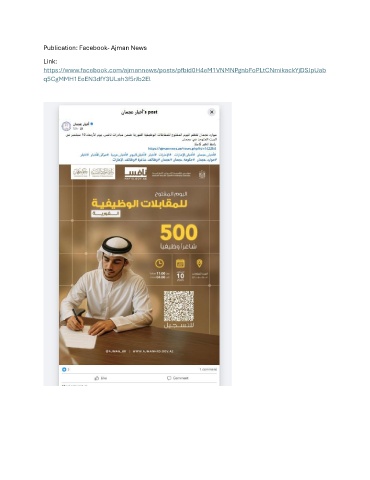 Publication: Facebook- Ajman News Link: https://www.facebook.com/ajmannews/posts/pfbid0H4eM1VNMNPgnbFoPLtCNmikackYjDSJpUab q5CgMMH1EeEN3dfY3ULah3f5rJb2El