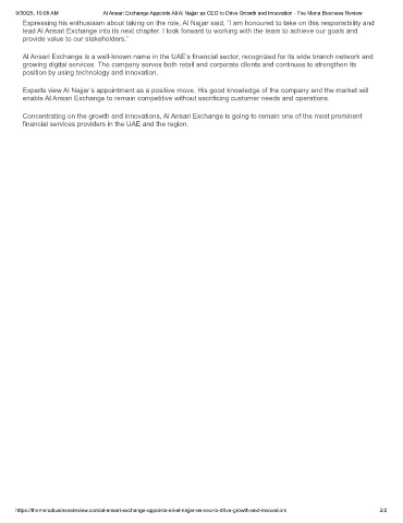 https://themenabusinessreview.com/al-ansari-exchange-appoints-ali-al-najjar-as-ceo-to-drive-growth-and-innovation/  2/2