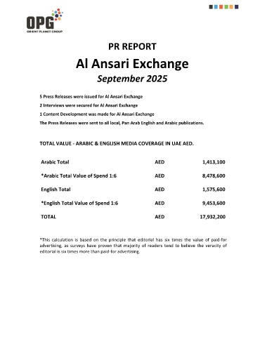 TOTAL VALUE - ARABIC & ENGLISH MEDIA COVERAGE IN UAE AED.