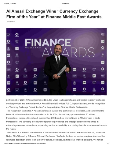 Najjar, Chief Operating Officer at Al Ansari Exchange. “It reflects the trust our customers place in us and the