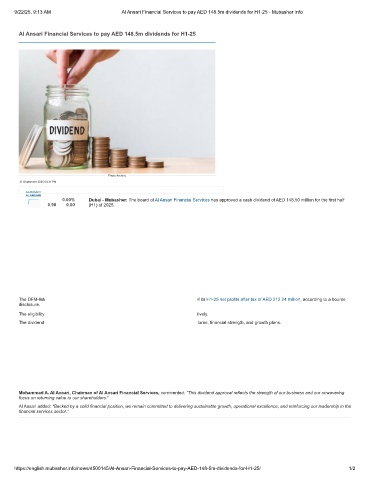 https://english.mubasher.info/news/4500145/Al-Ansari-Financial-Services-to-pay-AED-148-5m-dividends-for-H1-25/ 1/2