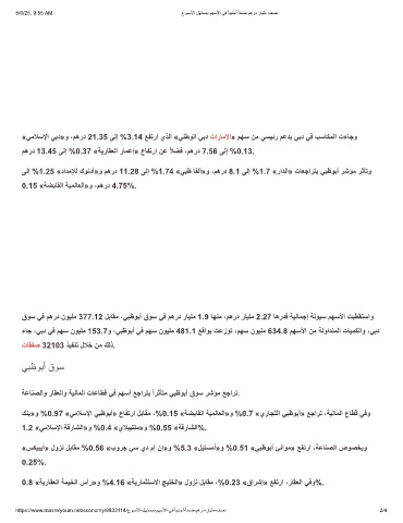«ﻲﻣﻼﺳﻹا ﻲﺑد»و ،مھرد 21.35 ﻰﻟإ %3.14 ﻊﻔﺗرا يذﻟا «ﻲﻧطوﻟا ﻲﺑد تارﺎﻣﻹا» مﮭﺳ نﻣ ﻲﺳﯾﺋر مﻋدﺑ ﻲﺑد ﻲﻓ بﺳﺎﻛﻣﻟا تءﺎﺟو