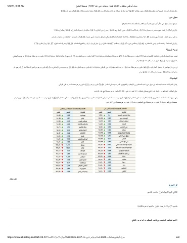 1.35 «عﺎﻌﺷ»و %0.8 «قرﺷﻣﻟا كﻧﺑ» لوزﻧ لﺑﺎﻘﻣ ،%0.7 «ﻲﻟﺎﻣﻟا ﻲﺑد قوﺳ»و %1.2 «يرﺎﺟﺗﻟا ﻲﺑد»و %1.2 «كﻼﻣأ»و %1.3 «نﺎﻣﺟﻋ فرﺻﻣ» مﮭﺳأ تﻌﻔﺗرا ،ﺔﯾﻟﺎﻣﻟا ﻲﻓو%.