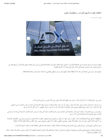 .ﺔﻄﻘﻧ 9638.98 ىﻮﺘﺴﻣ ﺪﻨﻋ %0.13 (ﻲﺟدﺎﻓ) ﻲﺒظﻮﺑأ قﻮﺳ ﺮﺷﺆﻣ ﻊﻔﺗرا ﺎﻤﯿﻓ ،ﺔﻄﻘﻧ 5333.93 ﻰﻟإ %0.4 ﻲﺑد قﻮﺳ ﺮﺷﺆﻣ ﻊﻔﺗرا