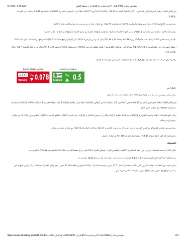 فرﺻﻣ»و %0.23 «كﻼﻣأ»و %2.45 «قرﺷﻣﻟا كﻧﺑ»و %1.7 «لﺎﺗﯾﺑﺎﻛ عﺎﻌﺷ» لوزﻧ لﺑﺎﻘﻣ ،%0.93 «ﻲﻧطوﻟا ﻲﺑد تارﺎﻣﻹا»و %3 «ﻲﻣﻼﺳﻹا ﻲﺑد»و %0.35 «يرﺎﺟﺗﻟا ﻲﺑد» مﮭﺳأ تﻌﻔﺗرا ،ﺔﯾﻟﺎﻣﻟا عﺎطﻗ ﻲﻓو