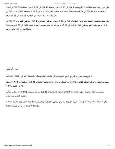 «دادﻣﻺﻟ كوﻧدأ» لوزﻧ لﺑﺎﻘﻣ ،%3.85 «سﻛﯾﺑﯾآ»و %0.26 «ﻲﺑظوﺑأ ﺊﻧاوﻣ»و %0.74 «ﻲﺑظ ﺎﻔﻟأ» مﮭﺳأ تﻌﻔﺗرا ،ﺔﻋﺎﻧﺻﻟا عﺎطﻗ ﻲﻓو