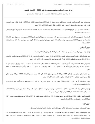 ﻲﺒﻇﻮﺑأ» ﻢﻬﺳ ةدﺎﻴﻘﺑ ،ﺔﻄﻘﻧ 9707.02 ﻰﻟإ %0.42 دﻮﻌﺻ ﺔﺒﺴﻨﺑ ،2024 ﺮﻳﺎﻨﻳ 19 ﺔﺴﻠﺟ ﺬﻨﻣ ﻪﻟ قالﻏإ ﻰﻠﻋأ (ﻲﺟدﺎﻓ) مﺎﻌﻟا ﻲﺒﻇﻮﺑأ قﻮﺳ رشﺆﻣ ﻞﺠﺳ