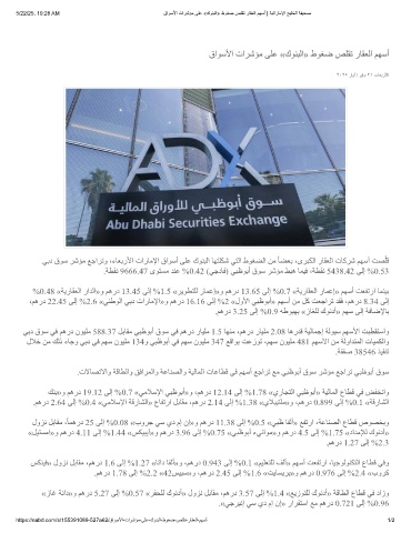 ،ﻢھرد 22.45 ﻰﻟإ %2.6 «ﻲﻨطﻮﻟا ﻲﺑد تارﺎﻣﻹا»و ﻢھرد 16.16 ﻰﻟإ %2 «لوﻷا ﻲﺒظﻮﺑأ» ﻢﮭﺳأ ﻦﻣ ﻞﻛ ﺖﻌﺟاﺮﺗ ﺪﻘﻓ ،ﻢھرد 8.34 ﻰﻟإ