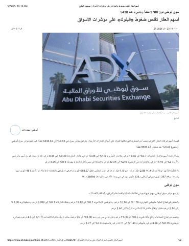 ﻲﺑظوﺑأ قوﺳ رﺷؤﻣ طﺑھ ﺎﻣﯾﻓ ،ﺔطﻘﻧ 5438.42 ﻰﻟإ %0.53 ﻲﺑد قوﺳ رﺷؤﻣ ﻊﺟارﺗو ،ءﺎﻌﺑرﻷا تارﺎﻣﻹا قاوﺳأ ﻰﻠﻋ كوﻧﺑﻟا ﺎﮭﺗﻠﻛﺷ ﻲﺗﻟا طوﻐﺿﻟا نﻣ ً ﺎﺿﻌﺑ ،ىرﺑﻛﻟا رﺎﻘﻌﻟا تﺎﻛرﺷ مﮭﺳأ تﺻ ّ ﻠﻗ