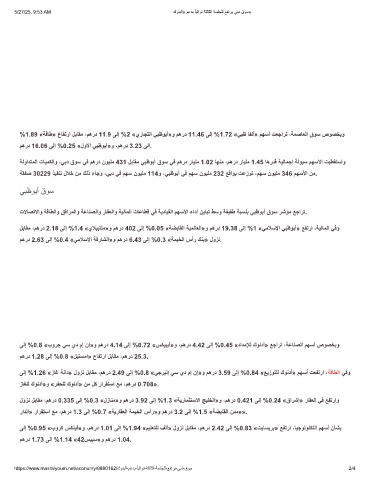 ﻰﻟإ %0.8 «بورﺟ ﻲﺳ يد مإ نإ»و مھرد 4.14 ﻰﻟإ %0.72 «سﻛﯾﺑﯾآ»و ،مھرد 4.42 ﻰﻟإ %0.45 «دادﻣﻺﻟ كوﻧدأ» ﻊﺟارﺗ ،ﺔﻋﺎﻧﺻﻟا مﮭﺳأ صوﺻﺧﺑو
