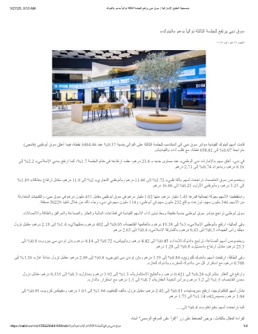 %1.89 «ﺔﻗﺎط» عﺎﻔﺗرا ﻞﺑﺎﻘﻣ ،ﻢھرد 11.9 ﻰﻟإ %2 «يرﺎﺠﺘﻟا ﻲﺒظﻮﺑأ»و ﻢھرد 11.46 ﻰﻟإ %1.72 «ﻲﺒظ ﺎﻔﻟأ» ﻢﮭﺳأ ﺖﻌﺟاﺮﺗ ،ﺔﻤﺻﺎﻌﻟا قﻮﺳ صﻮﺼﺨﺑو