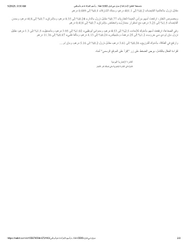 .ﻢھرد 0.418 ﻰﻟإ %0.7 «قاﺮﺷإ» ضﺎﻔﺨﻧاو «لزﺎﻨﻣ» راﺮﻘﺘﺳا ﻊﻣ ،ﻢھرد 3.25 ﻰﻟإ %1.5 «ﺔﻀﺑﺎﻘﻟا