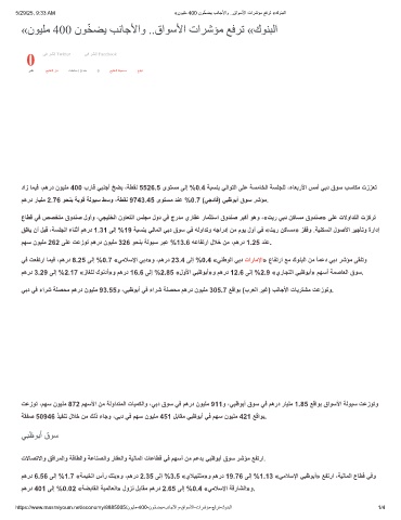 تﻋزوﺗ ،مﮭﺳ نوﯾﻠﻣ 872 مﮭﺳﻷا نﻣ ﺔﻟوادﺗﻣﻟا تﺎﯾﻣﻛﻟاو ،ﻲﺑد قوﺳ ﻲﻓ مھرد نوﯾﻠﻣ 911و ،ﻲﺑظوﺑأ قوﺳ ﻲﻓ مھرد رﺎﯾﻠﻣ 1.85 ﻊﻗاوﺑ قاوﺳﻷا ﺔﻟوﯾﺳ تﻋزوﺗو