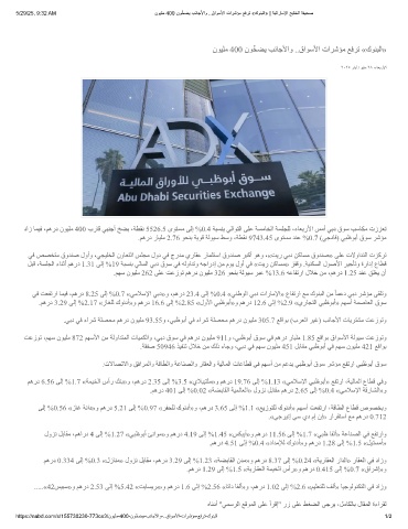 .ﻢھرد 3.29 ﻰﻟإ %2.17 «زﺎﻐﻠﻟ كﻮﻧدأ»و ﻢھرد 16.6 ﻰﻟإ %2.85 «لوﻷا ﻲﺒظﻮﺑأ»و ﻢھرد 12.6 ﻰﻟإ %2.9 «يرﺎﺠﺘﻟا ﻲﺒظﻮﺑأ» ﻢﮭﺳأ ﺔﻤﺻﺎﻌﻟا قﻮﺳ