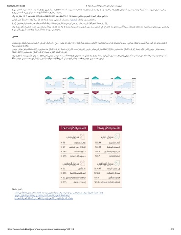 ،% 3 ﻦﻣ ﺮﺜﻛﺄﺑ ﺔﯿﻤﯿﻠﻌﺘﻟا ءﺎﻄﻋ ﻢﮭﺳ ﻊﻔﺗراو ،ًﻻﺎﯾر 16.54 ﺪﻨﻋ % 4 ﺔﺒﺴﻨﺑ ،ﺔﯾدﻮﻌﺴﻟا ﺔﻋﻮﻤﺠﻤﻟا ﻢﮭﺳ ﺪﻌﺻ ﻞﺑﺎﻘﻤﻟا ﻲﻓ ،جاردﻹا ﺬﻨﻣ قﻼﻏإ ﻰﻧدأ ًﻼﺠﺴﻣ ،ًﻻﺎﯾر 14.68 ﺪﻨﻋ % 2 ﺔﺒﺴﻨﺑ ناﺪﯾر ﻢﮭﺳ ﺾﻔﺨﻧاو