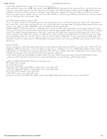 تﺎﻌﻳزﻮﺗ ﻲﻟﺎﻤﺟإ ﻎﻠﺑ ،اﺬﮫﺑو .2025 ﻞﻳﺮﺑأ ﻲﻓ ﺎﮫﻓﺮﺻ ﻢﺗ ،2024 مﺎﻋ ﻦﻣ ﻲﻧﺎﺜﻟا ﻒﺼﻨﻠﻟ ﻢھرد نﻮﯿﻠﻣ 199.2 ﺔﻤﯿﻘﺑ ﺔﻳﺪﻘﻧ ﺎﺣﺎﺑرأ ﺔﻛﺮﺸﻟا ﺖﻋزو ،2025
