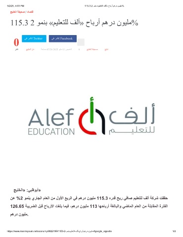 5/2/25, 4:03 PM 115.3 2 وﻣﻧﺑ «مﯾﻠﻌﺗﻠﻟ فﻟأ» حﺎﺑرأ مھرد نوﯾﻠﻣ%
