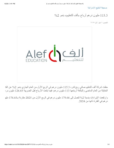 5/2/25, 3:41 PM 2 وﻣﻧﺑ «مﯾﻠﻌﺗﻠﻟ فﻟأ» حﺎﺑرأ مھرد نوﯾﻠﻣ 115.3 | ﺔﯾﺗارﺎﻣﻹا ﺞﯾﻠﺧﻟا ﺔﻔﯾﺣﺻ%