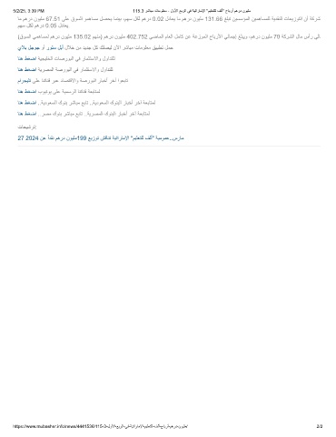 (قوﺳﻟا ﻲﻣھﺎﺳﻣﻟ مھرد نوﯾﻠﻣ 135.02 مﮭﻧﻣ) مھرد نوﯾﻠﻣ 402.752 ﻲﺿﺎﻣﻟا مﺎﻌﻟا لﻣﺎﻛ نﻋ ﺔﻋزوﻣﻟا حﺎﺑرﻷا ﻲﻟﺎﻣﺟإ ﻎﻠﺑﯾو ،مھرد نوﯾﻠﻣ 70 ﺔﻛرﺷﻟا لﺎﻣ سأر ﻲﻟﺎﻣ
