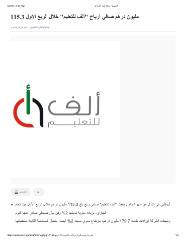 مﺎﻌﻟا نﻣ لوﻷا ﻊﺑرﻟا لﻼﺧ مھرد نوﯾﻠﻣ 115.3 ﻎﻠﺑ ﺢﺑر ﻲﻓﺎﺻ "مﯾﻠﻌﺗﻠﻟ فﻟأ" تﻘﻘﺣ / ماو / وﯾﺎﻣ نﻣ لوﻷا ﻲﻓ ﻲﺑظوﺑأ