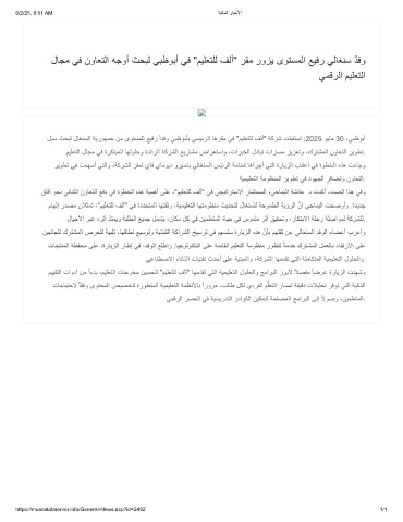 لﺑﺳ ثﺣﺑﻟ لﺎﻐﻧﺳﻟا ﺔﯾروﮭﻣﺟ نﻣ ىوﺗﺳﻣﻟا ﻊﯾﻓر ًادﻓو ﻲﺑظوﺑﺄﺑ ﻲﺳﯾﺋرﻟا ﺎھرﻘﻣ ﻲﻓ "مﯾﻠﻌﺗﻠﻟ فﻟأ" ﺔﻛرﺷ تﻠﺑﻘﺗﺳا :2025 وﯾﺎﻣ 30 ،ﻲﺑظوﺑأ