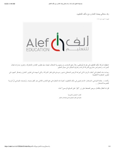 6/2/25, 8:49 AM مﯾﻠﻌﺗﻠﻟ فﻟأ» ﻊﻣ نوﺎﻌﺗﻟا ثﺣﺑﯾ ﻲﻟﺎﻐﻧﺳ دﻓو | ﺔﯾﺗارﺎﻣﻹا ﺞﯾﻠﺧﻟا ﺔﻔﯾﺣﺻ»