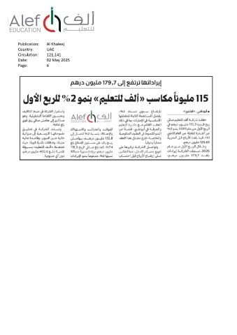 Publication: Al Khaleej Country: UAE Circulation: 121,141 Date: 02 May 2025 Page: 6