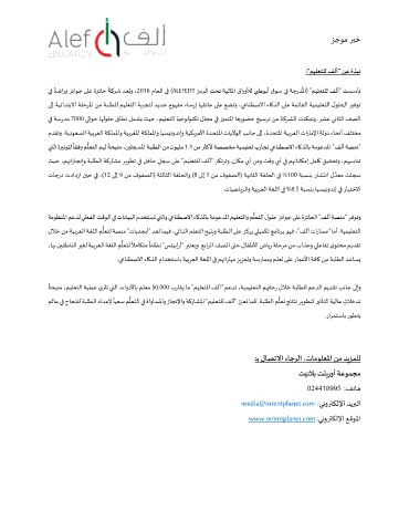 :"ﻢﻴﻠﻌﺘﻠﻟ ﻒﻟأ" ﻦﻋ ةﺬﺒﻧ