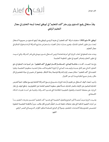 لﺎﻐﻨـﺴﻟا ﺔ�رﻮهﻤﺟ ﻦﻣ ىﻮﺘـﺴﳌا ﻊﻴﻓر اﺪﻓو ي�ﻇﻮﺑﺄﺑ يىـ�يﺋﺮﻟا ﺎهﺮﻘﻣ �� "ﻢﻴﻠﻌﺘﻠﻟ ﻒﻟأ" ﺔﻛﺮـﺷ ﺖﻠﺒﻘﺘـﺳا : 2025 ﻮﻳﺎﻣ 30 ،ي�ﻇﻮﺑأ