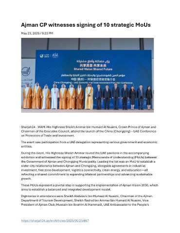 the Government of Ajman and Chongqing Municipality. Leading the list was an MoU to establish a