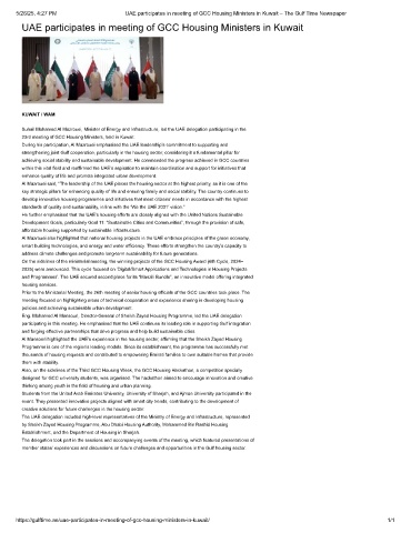 5/26/25, 4:27 PM UAE participates in meeting of GCC Housing Ministers in Kuwait – The Gulf Time Newspaper
