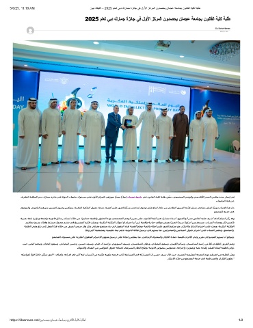 5/6/25, 11:10 AM زوﯾﻧ كﻠﯾﻠﻟا – 2025 مﺎﻌﻟ ﻲﺑد كرﺎﻣﺟ ةزﺋﺎﺟ ﻲﻓ لوﻷا زﻛرﻣﻟا نودﺻﺣﯾ نﺎﻣﺟﻋ ﺔﻌﻣﺎﺟﺑ نوﻧﺎﻘﻟا ﺔﯾﻠﻛ ﺔﺑﻠط