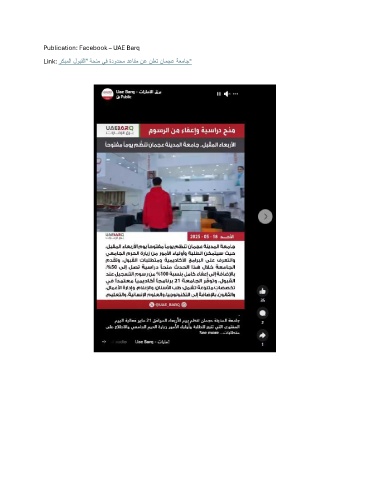 Publication: Facebook – UAE Barq Link: ركبملا لوبقلا" ةحنم يف ةدودحم دعاقم نع نلعت نامجع ةعماج"