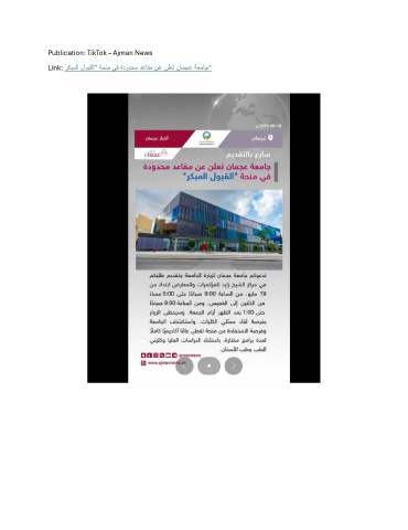 Publication: TikTok – Ajman News Link: ركبملا لوبقلا" ةحنم يف ةدودحم دعاقم نع نلعت نامجع ةعماج"