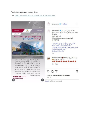 Publication: Instagram – Ajman News Link: ميدقتلاب عراس ،ركبملا لوبقلا ةحنم يف ةدودحم دعاقم نع نلعت نامجع ةعماج