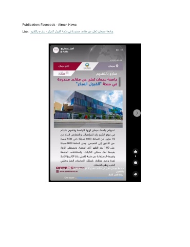Publication: Facebook – Ajman News Link: ميدقتلاب عراس ،ركبملا لوبقلا ةحنم يف ةدودحم دعاقم نع نلعت نامجع ةعماج
