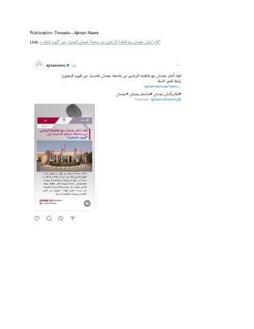 Publication: Threads – Ajman News Link: حوتفملا مويلا" نع ثيدحلل نامجع ةعماج نم يباعزلا ةمطاف عم نامجع رابخأ ءاقل"