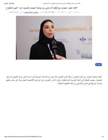 حﻮﺘﻔﻤﻟا مﻮﯿﻟا" ﻦﻋ ﺚﯾﺪﺤﻠﻟ نﺎﻤﺠﻋ ﺔﻌﻣﺎﺟ ﻦﻣ ﻲﺑﺎﻋﺰﻟا ﺔﻤطﺎﻓ ﻊﻣ نﺎﻤﺠﻋ رﺎﺒﺧأ ءﺎﻘﻟ"