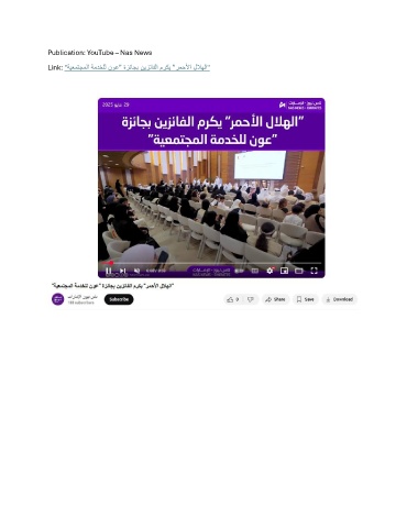 Publication: YouTube – Nas News Link: "ةيعمتجملا ةمدخلل نوع" ةزئاجب نيزئافلا مركي "رمحلأا للاهلا"