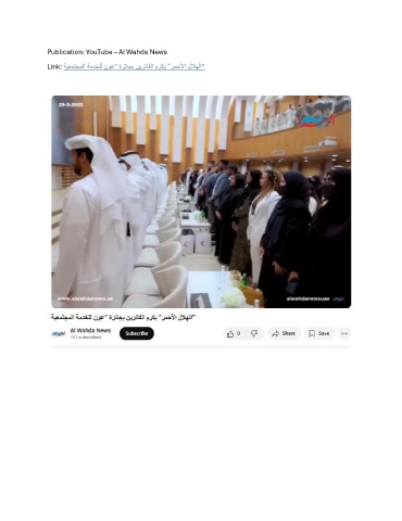 Publication: YouTube – Al Wahda News Link: ةيعمتجملا ةمدخلل نوع“ ةزئاجب نيزئافلا مركي ”رمحلأا للاهلا”