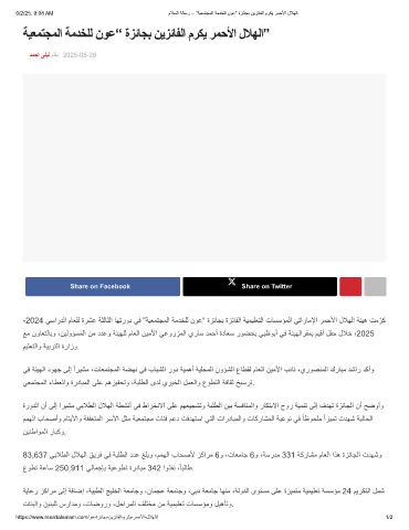 6/2/25, 9:08 AM مﻼﺳﻟا ﺔﻟﺎﺳر – ”ﺔﯾﻌﻣﺗﺟﻣﻟا ﺔﻣدﺧﻠﻟ نوﻋ“ ةزﺋﺎﺟﺑ نﯾزﺋﺎﻔﻟا مرﻛﯾ رﻣﺣﻷا لﻼﮭﻟا