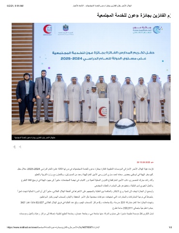 لﻔﺣ لﻼﺧ ،2025-2024 ﻲﺳاردﻟا مﺎﻌﻠﻟ ةرﺷﻋ ﺔﺛﻟﺎﺛﻟا ﺎﮭﺗرود ﻲﻓ «ﺔﯾﻌﻣﺗﺟﻣﻟا ﺔﻣدﺧﻠﻟ نوﻋ» ةزﺋﺎﺟﺑ ةزﺋﺎﻔﻟا ﺔﯾﻣﯾﻠﻌﺗﻟا تﺎﺳﺳؤﻣﻟا ﻲﺗارﺎﻣﻹا رﻣﺣﻷا لﻼﮭﻟا ﺔﺋﯾھ تﻣ ّ رﻛ