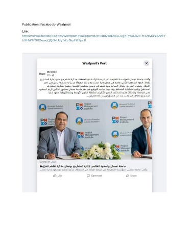 Publication: Facebook- Westpost Link: https://www.facebook.com/Westpost.news/posts/pfbid02xAKdZLGugYTpvDUkZTPco2cvSxYEAz1Y bBHWTF9RDewqQQ6NUdyTaEz3kpFGSpx2l