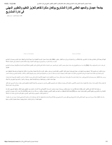 ﻊﯾرﺎﺷﻣﻟا ةرادإ دﮭﻌﻣ ﻊﻣ مھﺎﻔﺗ ةرﻛذﻣ ،ﺔﻘطﻧﻣﻟا ﻲﻓ ةدﺋارﻟا ﺔﯾﺣﺑرﻟا رﯾﻏ ﺔﯾﻣﯾﻠﻌﺗﻟا ﺔﺳﺳؤﻣﻟا ،نﺎﻣﺟﻋ ﺔﻌﻣﺎﺟ تﻌ ّ ﻗو (PMI)، رﯾوطﺗو ،رﺎﻛﺗﺑﻻا مﻋد ﻰﻟإ ﻲﻣرﺗ ﺔﻛرﺗﺷﻣ ﺔﯾؤر نﻣ ﺎًﻗﻼطﻧا كﻟذو ،ﻊﯾرﺎﺷﻣﻟا ةرادإ لﺎﺟﻣ ﻲﻓ ﺎًﯾﻣﻟﺎﻋ ﻰﻟوﻷا ﺔﯾﻌﺟرﻣﻟا ﺔﮭﺟﻟا