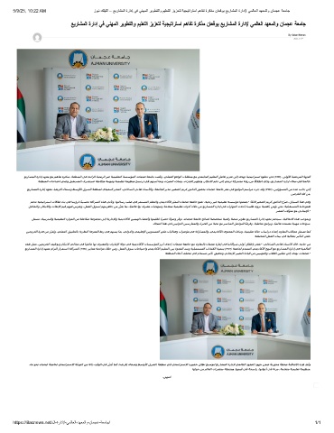 هﺬھ ﻞﺜﻤﺗ .ﻦﯿﺠﻳﺮﺨﻟا ﻒﯿظﻮﺗو رﺎﻜﺘﺑﻻا ﻲﻟﺎﺠﻣ ﻲﻓ ﺎًﯿﻤﻟﺎﻋ ﺎﮫﺑ فﺮﺘﻌﻤﻟاو تارﺎﻣﻹا ﺔﻟود ﻲﻓ ﺔﯿﻤﻳدﺎﻛﻷا تﺎﺴﺳﺆﻤﻟا زﺮﺑأ ىﺪﺣإ ،نﺎﻤﺠﻋ ﺔﻌﻣﺎﺟ ﻊﻣ نوﺎﻌﺘﻟﺎﺑ نﺎﻤﺠﻋ ةرﺎﻣإ ﻲﻓ ﺎﻨﺗﺎﻛاﺮﺷ ﻰﻟوأ قﻼطﺈﺑ ﺮﺨﻔﻧ“ :ﻲﻟذﺎﺸﻟا ﻲﻧﺎھ ذﺎﺘﺳﻷا لﺎﻗ ،ﻪﺒﻧﺎﺟ ﻦﻣ