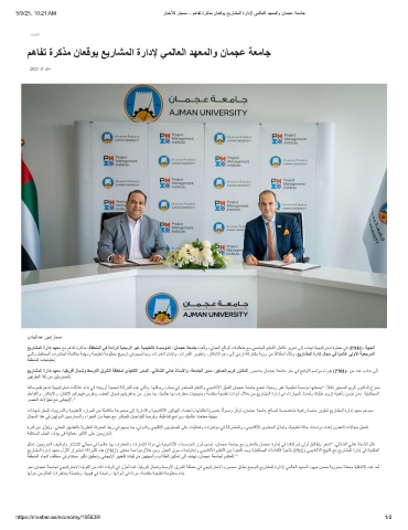 ﻊﯾرﺎﺸﻤﻟا ةرادإ ﺪﮭﻌﻣ ﻊﻣ ﻢھﺎﻔﺗ ةﺮﻛﺬﻣ ،ﺔﻘﻄﻨﻤﻟا ﻲﻓ ةﺪﺋاﺮﻟا ﺔﯿﺤﺑﺮﻟا ﺮﯿﻏ ﺔﯿﻤﯿﻠﻌﺘﻟا ﺔﺴﺳﺆﻤﻟا ،نﺎﻤﺠﻋ ﺔﻌﻣﺎﺟ ﺖﻌ ّ ﻗو ،ﻲﻠﻤﻌﻟا ﻊﻗاﻮﻟا تﺎﺒﻠﻄﺘﻣ ﻊﻣ ﻲﻌﻣﺎﺠﻟا ﻢﯿﻠﻌﺘﻟا ﻞﻣﺎﻜﺗ ﺰﯾﺰﻌﺗ ﻰﻟإ فﺪﮭﺗ ﺔﯿﺠﯿﺗاﺮﺘﺳا ةﻮﻄﺧ ﻲﻓ (PMI)، ﺔﮭﺠﻟا